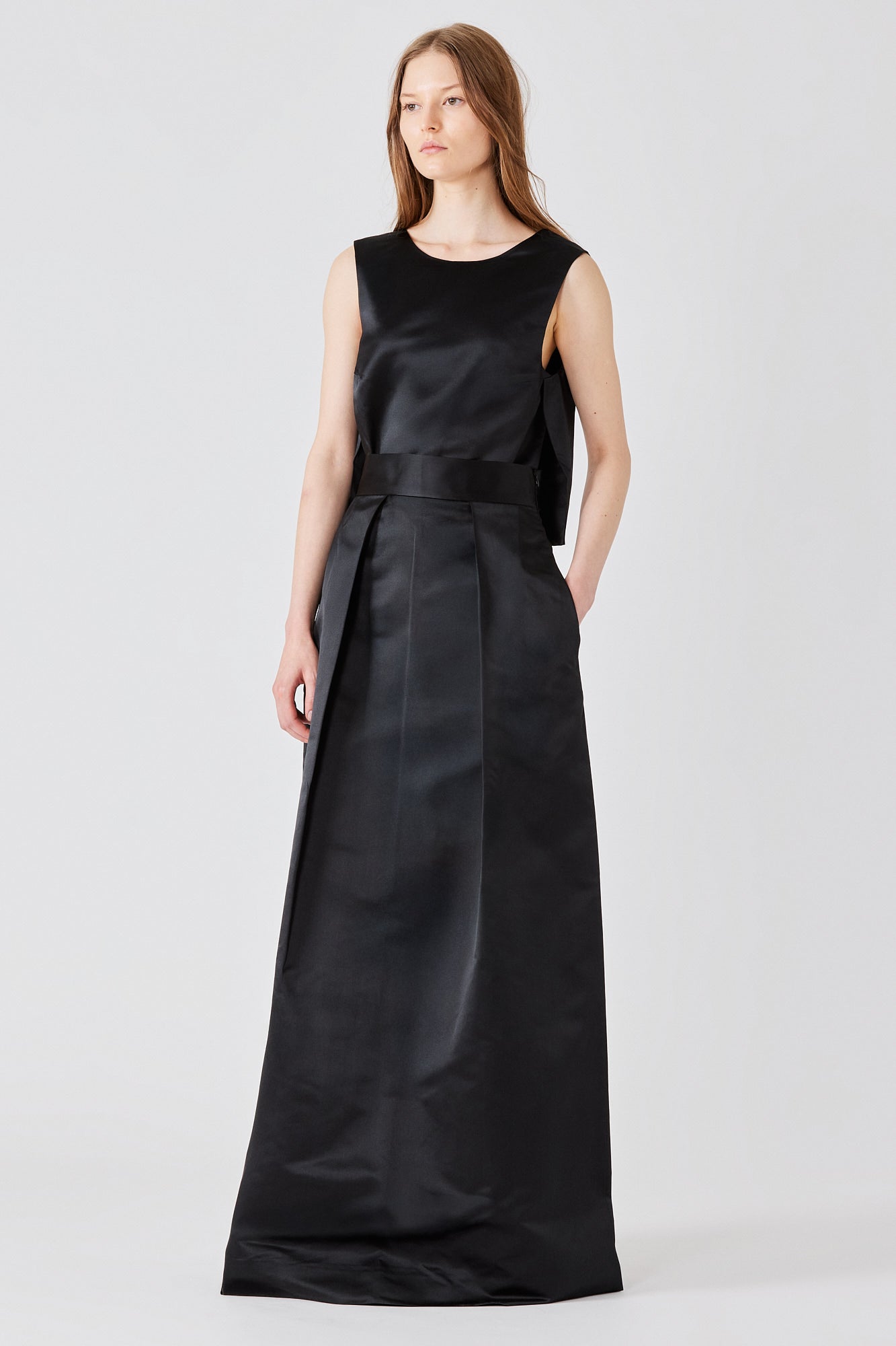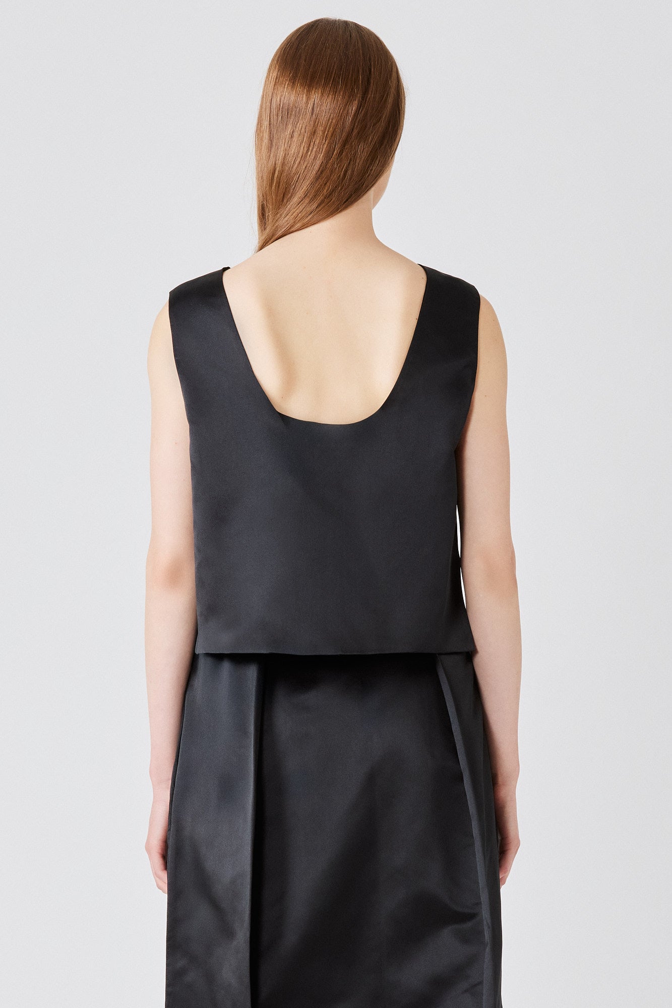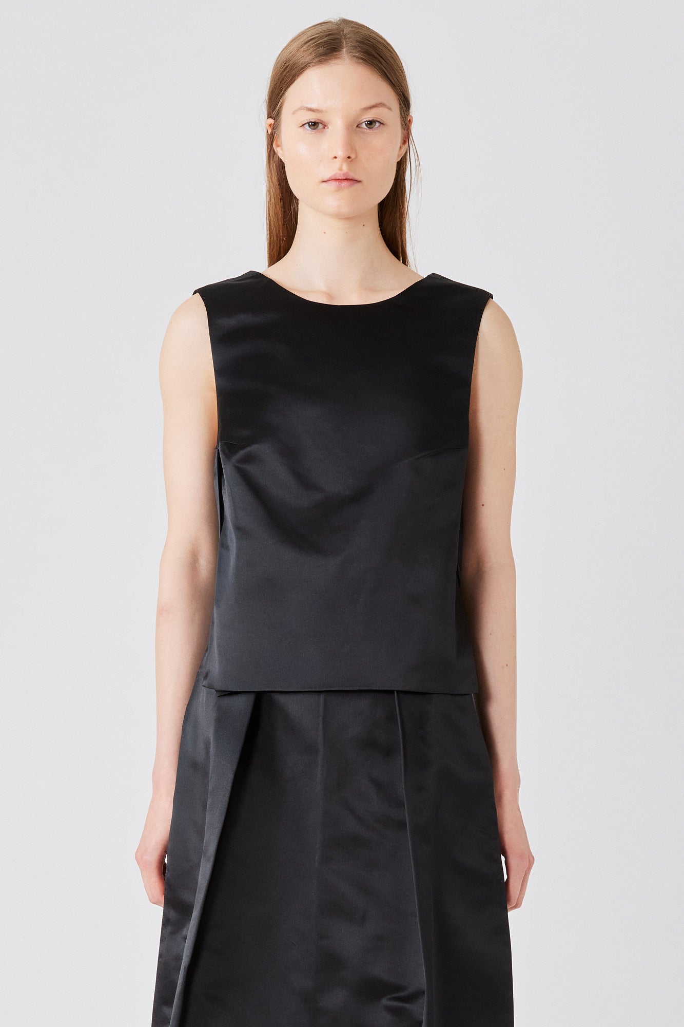 Crafted from silk ducesse, the Bogart Tank Top features a sculptural silhouette with a high neckline and asymmetric pleating. The lustrous finish and precise tailoring offer a bold, modern statement—ideal for refined layering or elevated evening looks.