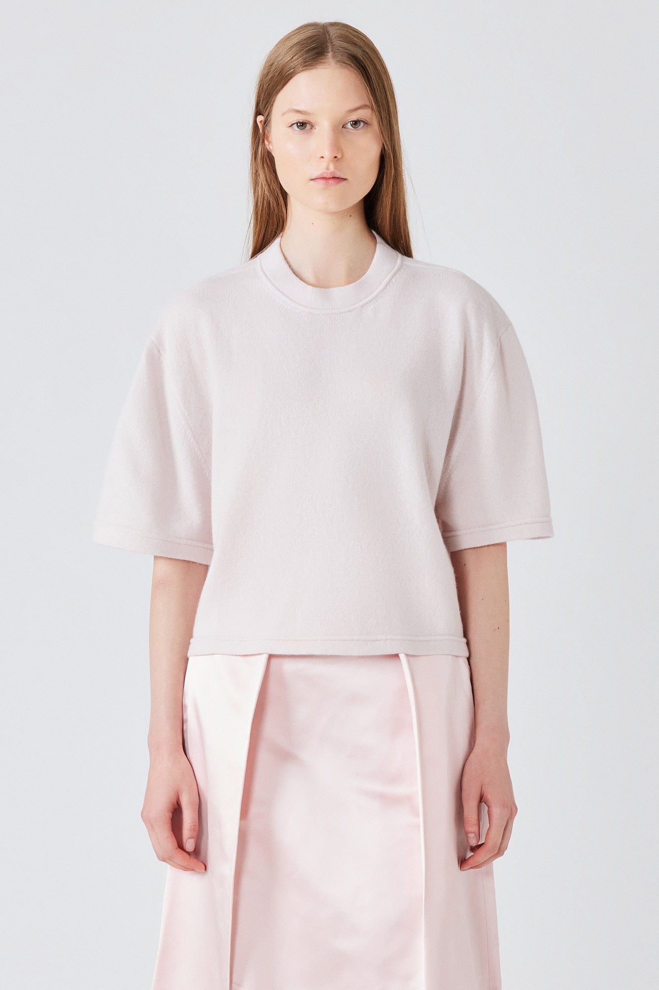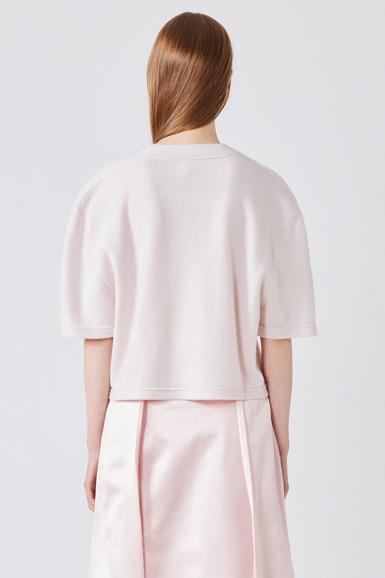 Knitted from pure cashmere, the Cropped T-Shirt features a relaxed silhouette with short sleeves and a classic crew neckline. The soft drape and minimalist design lend effortless ease, making it ideal for casual layering or refined everyday wear. Pair it with high-waisted trousers or skirts for a modern, balanced look.