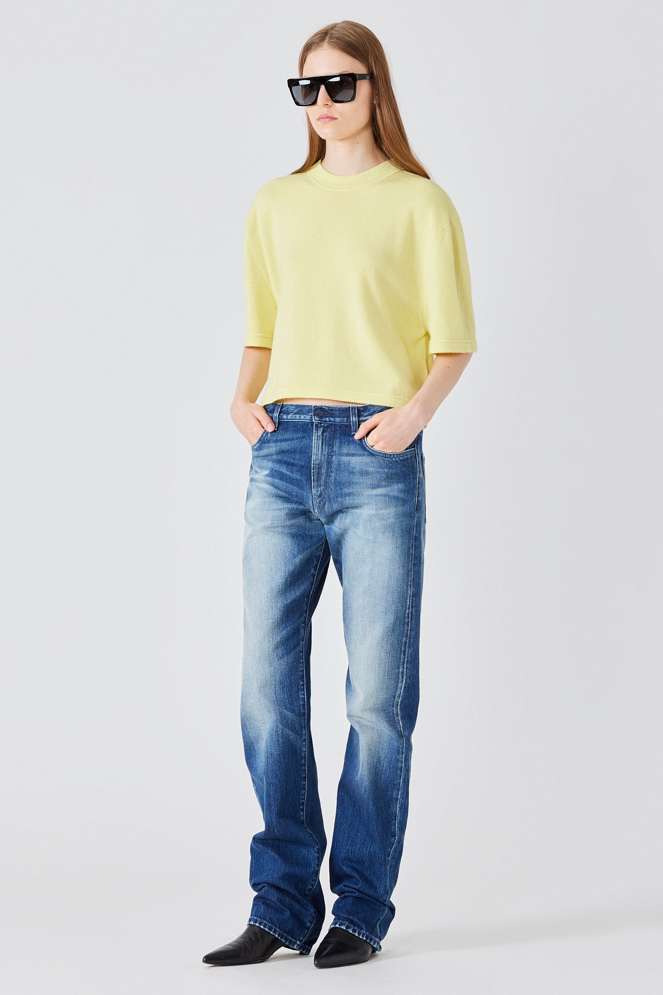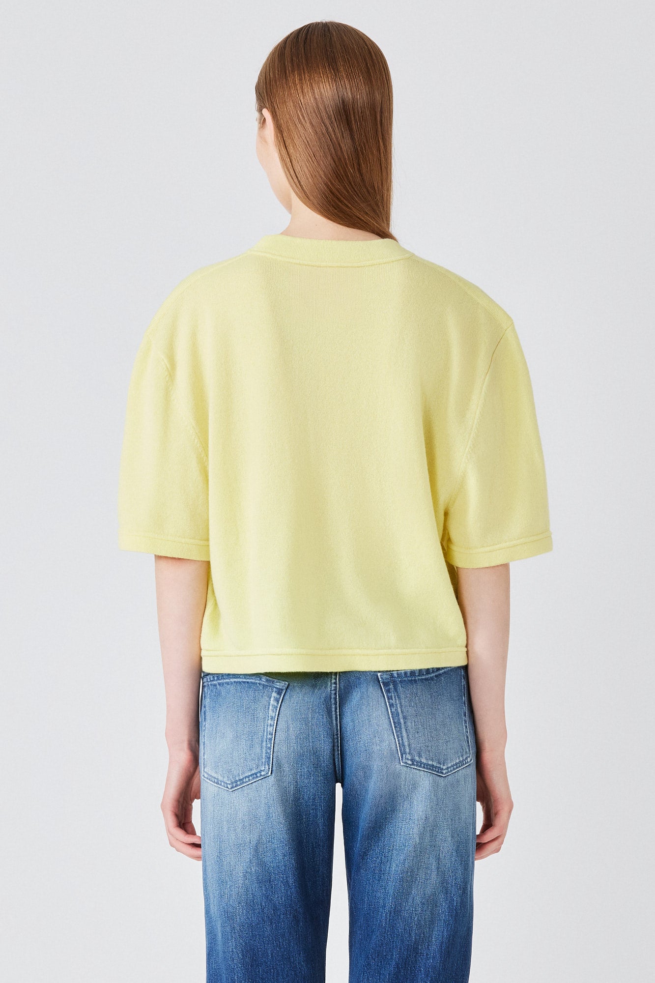 Knitted from pure cashmere, the Cropped T-Shirt features a relaxed silhouette with short sleeves and a classic crew neckline. The soft drape and minimalist design lend effortless ease, making it ideal for casual layering or refined everyday wear. Pair it with high-waisted trousers or skirts for a modern, balanced look.