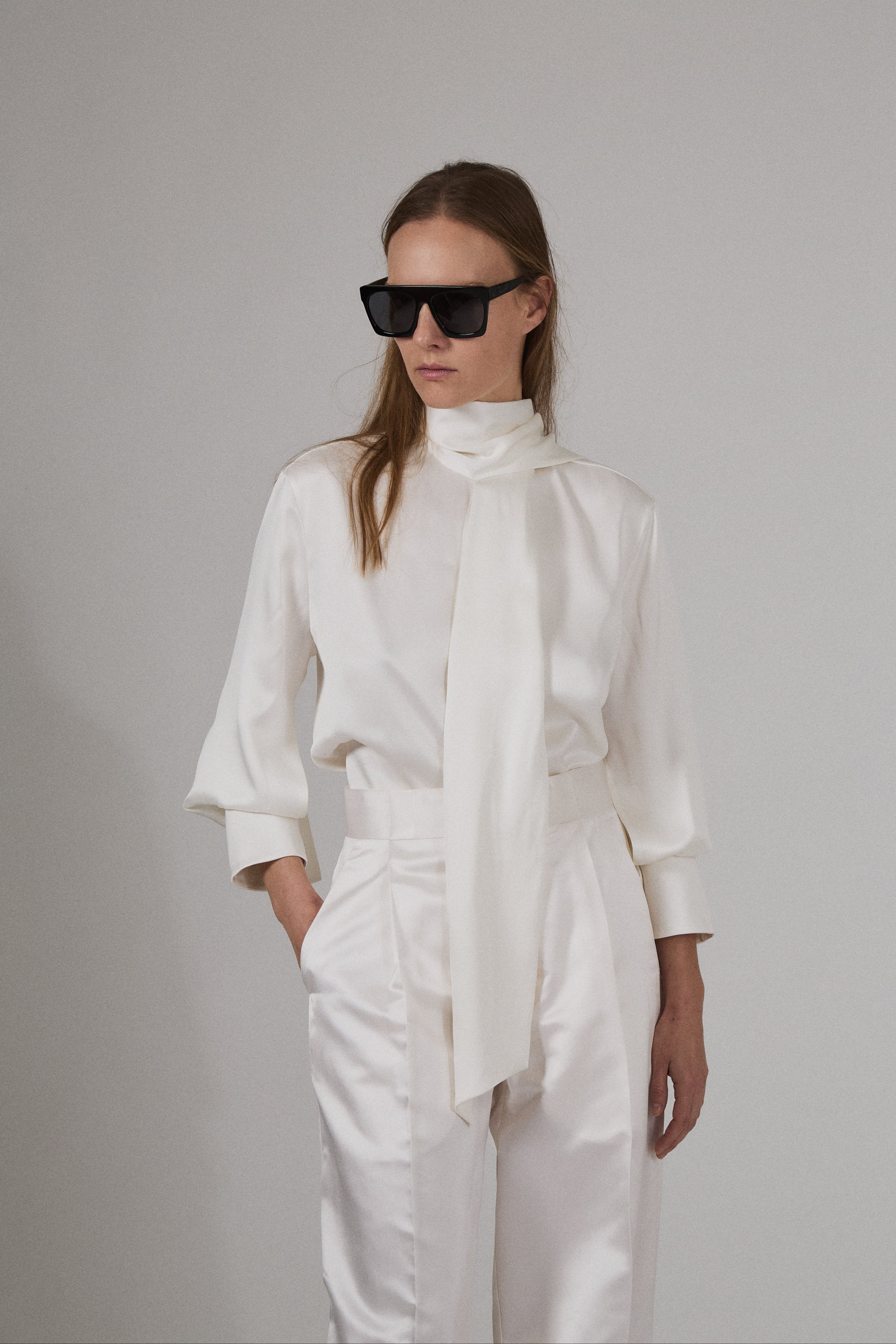 Camicia con sciarpa in doppio rasoPrezzo di listino €1.280 EURPrezzo di listinoPrezzo unitario / per-