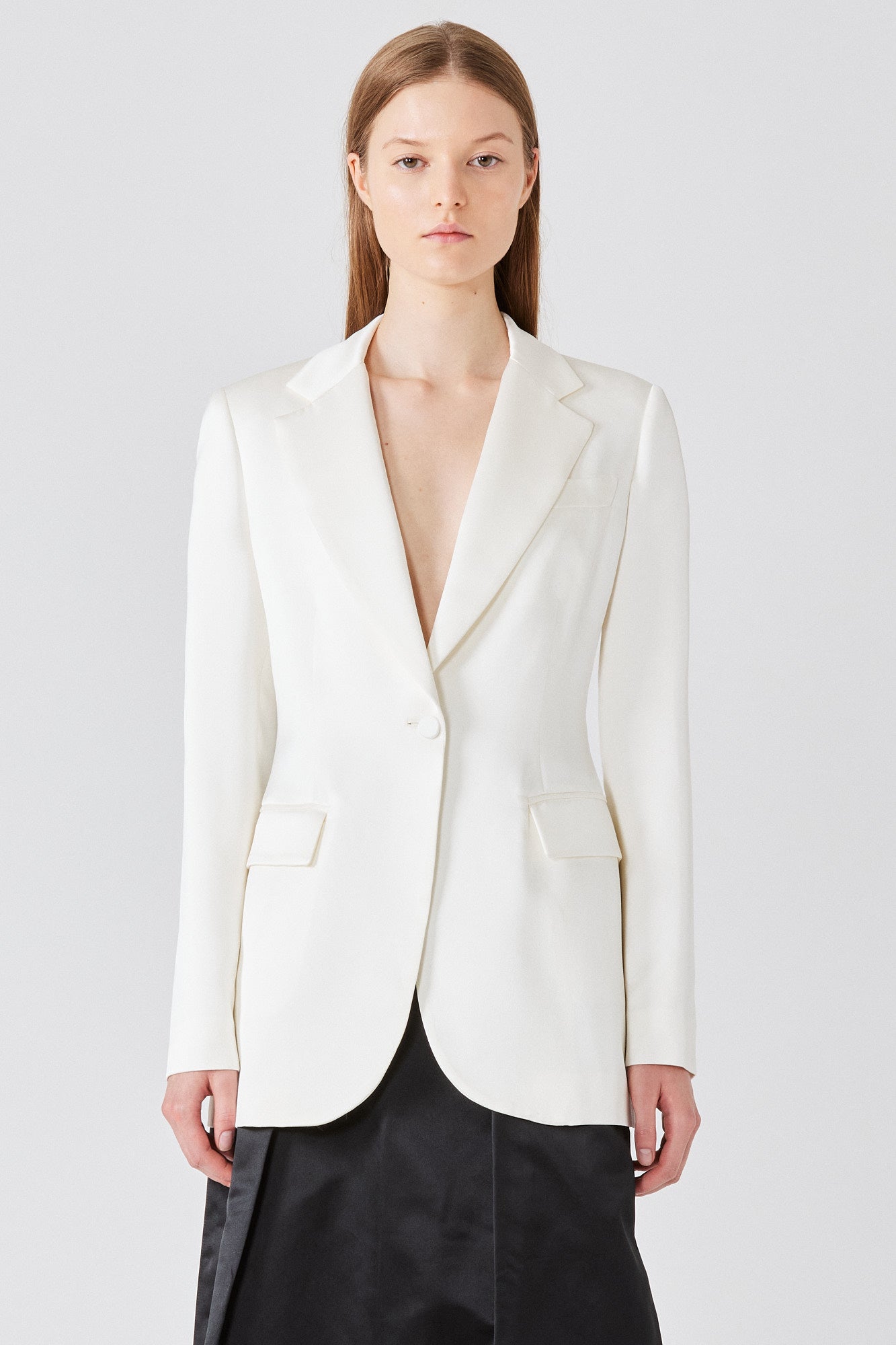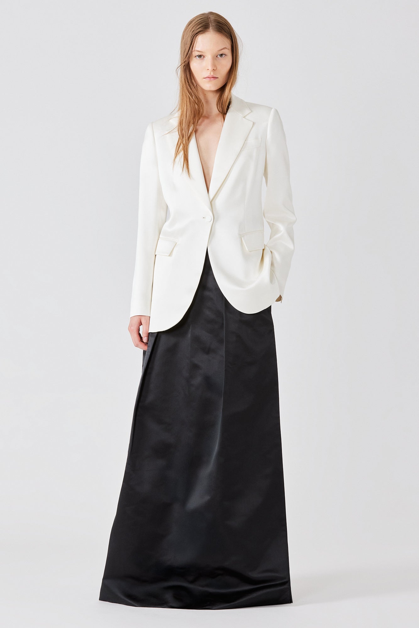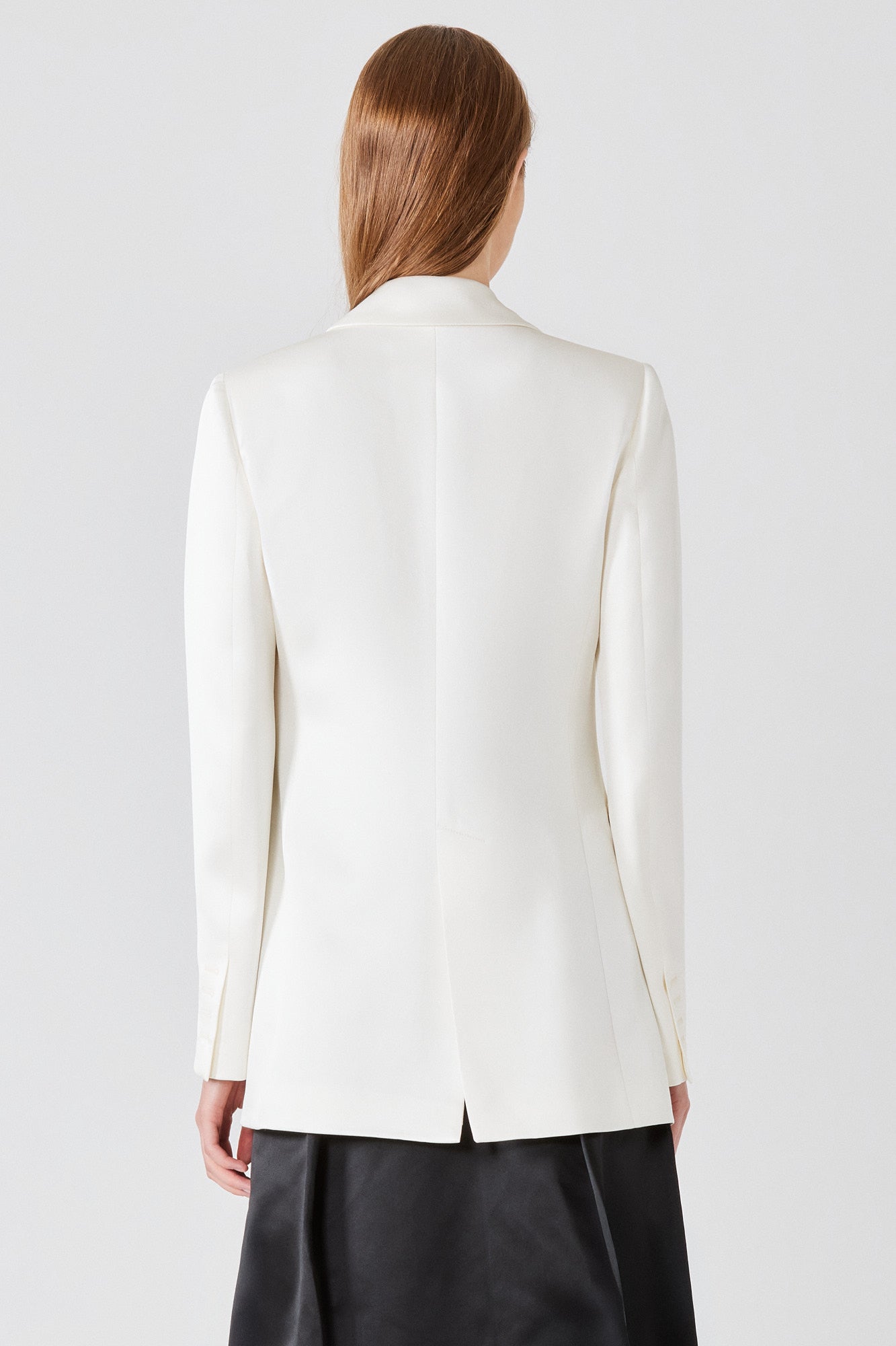 La giacca Andrea in doppio satin dona una morbidezza sensuale alla sartoria classica. Realizzata in un fluido misto seta, presenta una linea spalle dritta e una vita leggermente sagomata per una definizione sottile. La chiusura monopetto e le rever puliti accentuano la sua eleganza moderna, rendendola ideale per abiti da mezza stagione. Abbinala a pantaloni per un look raffinato, oppure indossala sopra abiti da sera per un tocco sofisticato.