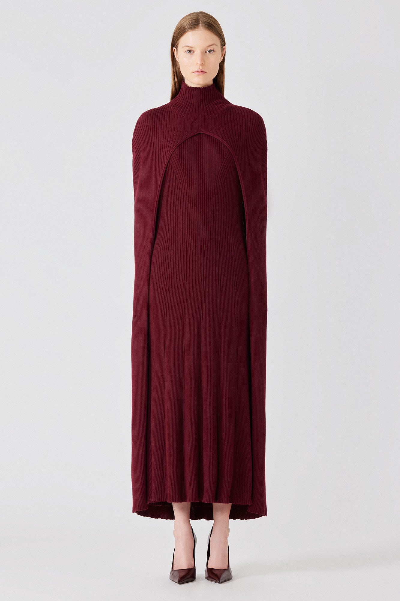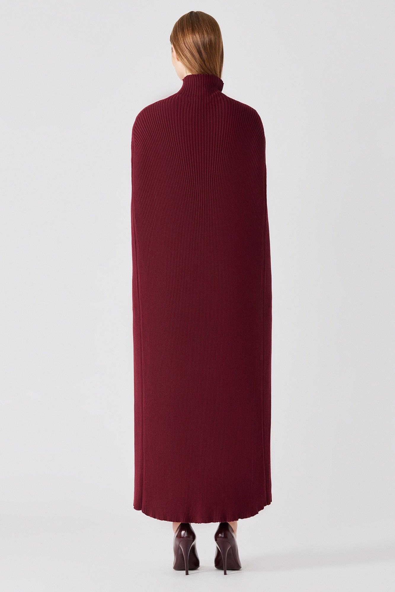 Lunga mantella a coste in cashmere e seta