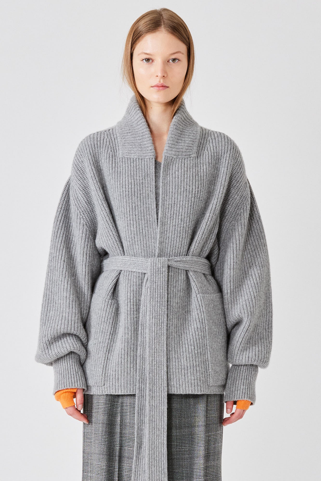 La giacca cardigan Gemma E.R. è realizzata in puro cashmere con una silhouette avvolgente, spalle scolpite e maniche ampie. Progettata con una struttura morbida e un volume generoso, si chiude in vita con una cintura tono su tono per una vestibilità raffinata e personalizzata. Rifinita con bordi a coste, è un'alternativa sofisticata all'abbigliamento esterno, ideale da indossare sopra maglieria o capi sartoriali per un look elegante e senza sforzo.