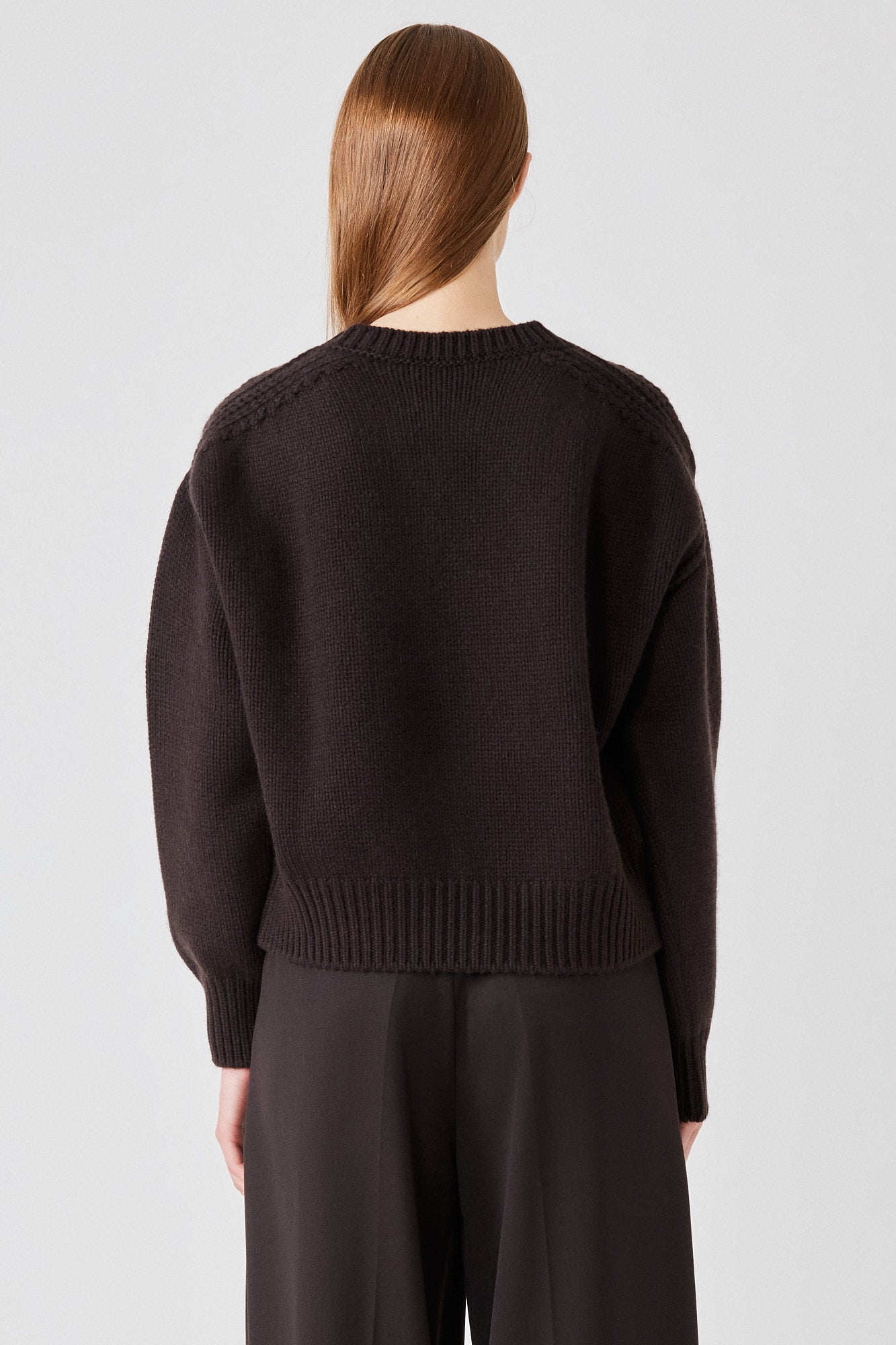 Una reinterpretazione moderna del classico maglione, questo pullover in cashmere è progettato con dettagli iconici sulle spalle, aggiungendo un tocco scultoreo alla sua silhouette minimalista. I delicati pannelli lavorati a maglia testurizzati sulle spalle creano un effetto sottile ma distintivo, valorizzando la struttura complessiva mantenendo una caduta morbida e fluida. Realizzato in cashmere leggero e lussuoso, questo capo offre un calore e una traspirabilità senza pari. Il collo a girocollo, i polsini e l'orlo a coste conferiscono una finitura raffinata, garantendo comfort e versatilità. Perfetto da indossare sopra capi sartoriali o come pezzo protagonista da solo.