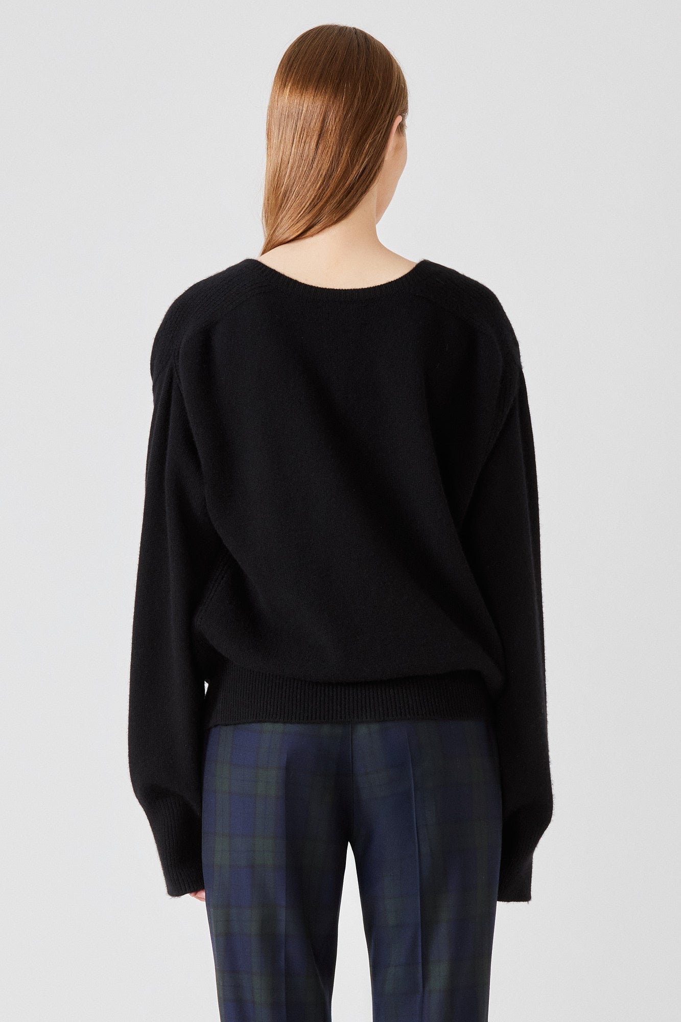 Un capo essenziale senza tempo in maglieria, questo maglione in puro cashmere è progettato per un'eleganza senza sforzo con una texture morbida e lussuosa e una silhouette rilassata. La profonda scollatura a V crea un look allungato e femminile, perfetto da indossare a strati o da solo come dichiarazione di eleganza discreta. Polsini e orlo a coste aggiungono una struttura sottile, mentre la maglia calda garantisce versatilità tutto l'anno. La caduta fluida lo rende ideale da infilare in pantaloni sartoriali o da indossare sciolto sopra silhouette a gamba larga per un'estetica moderna e disinvolta. Abbinalo a un completo in lana per un contrasto raffinato.