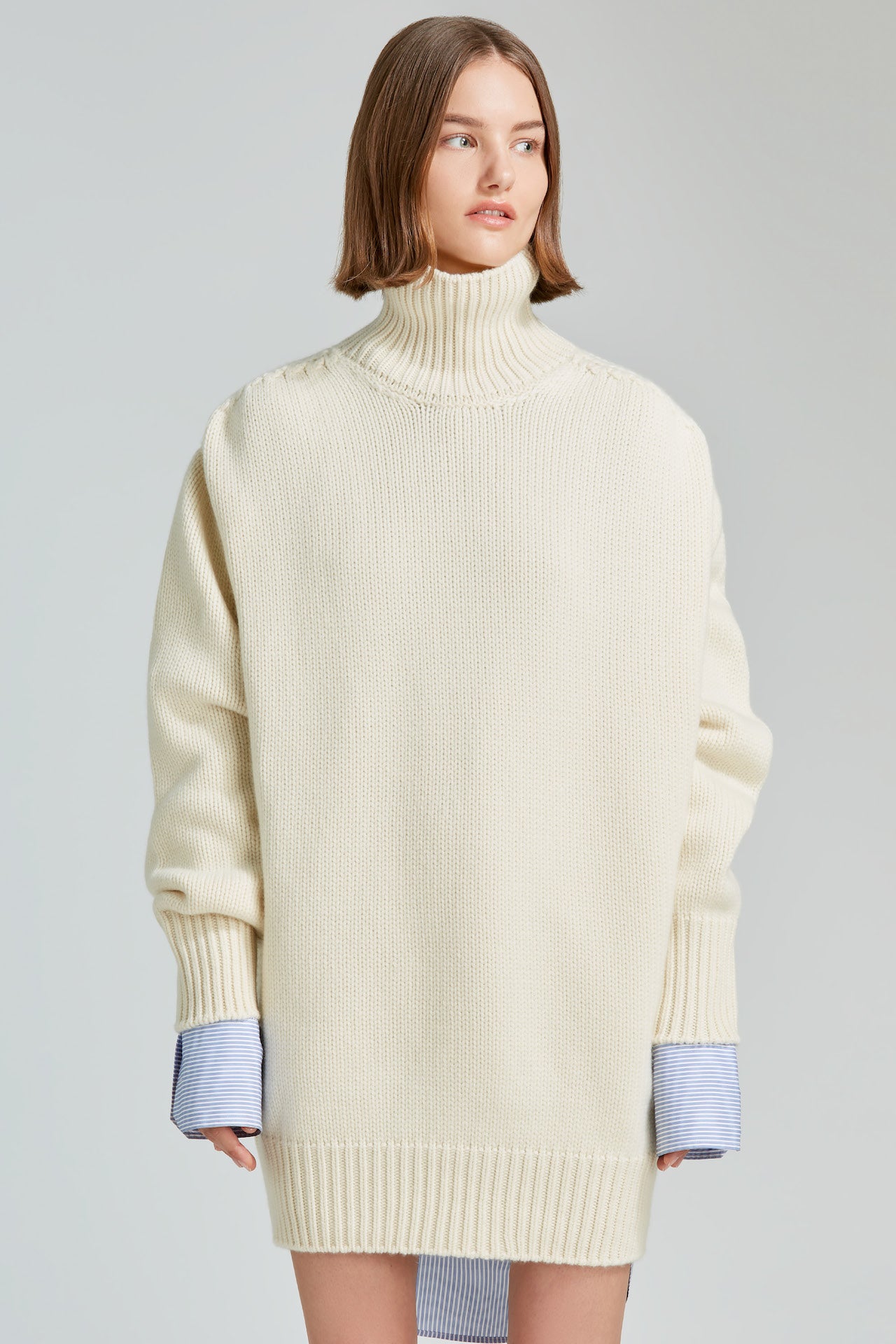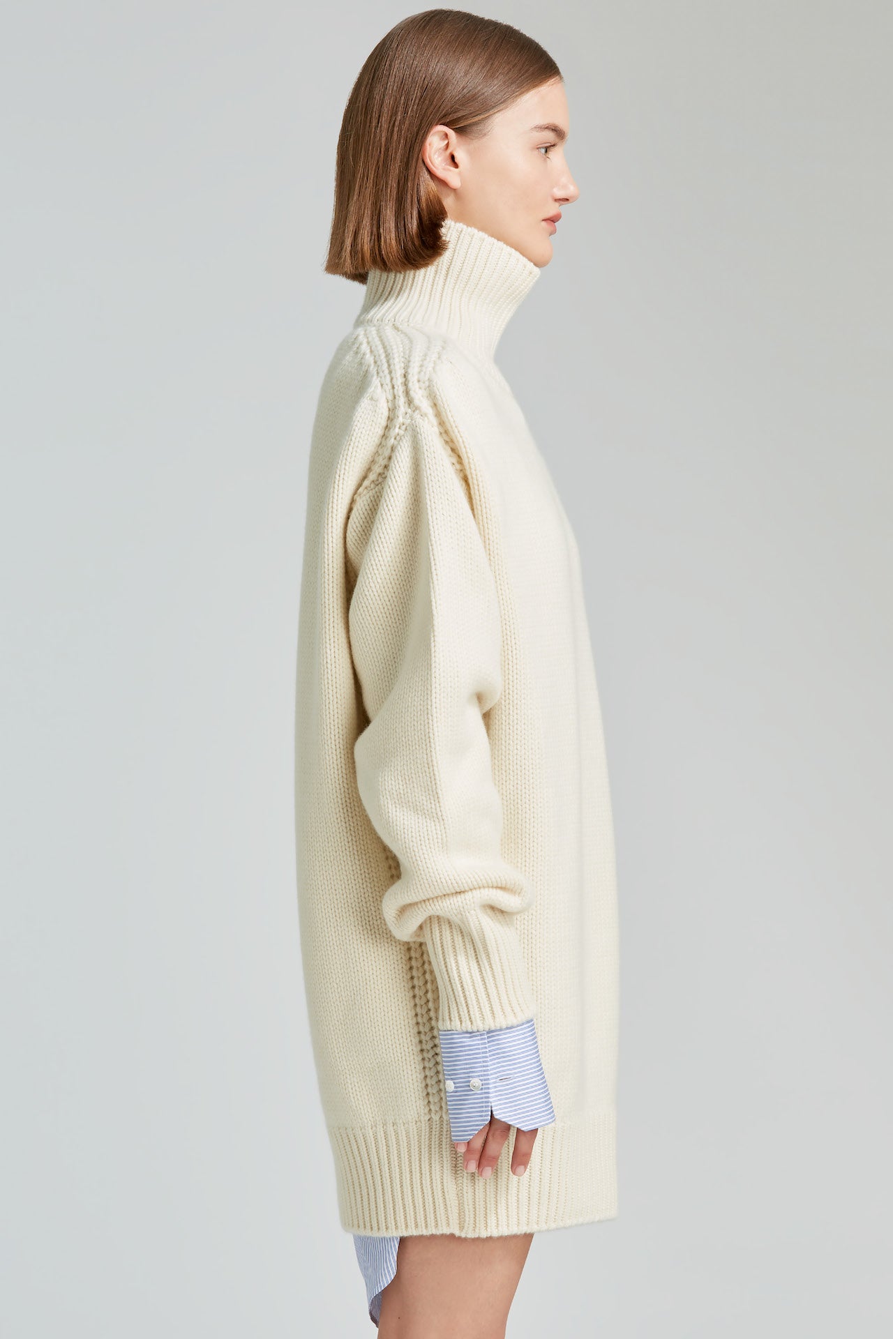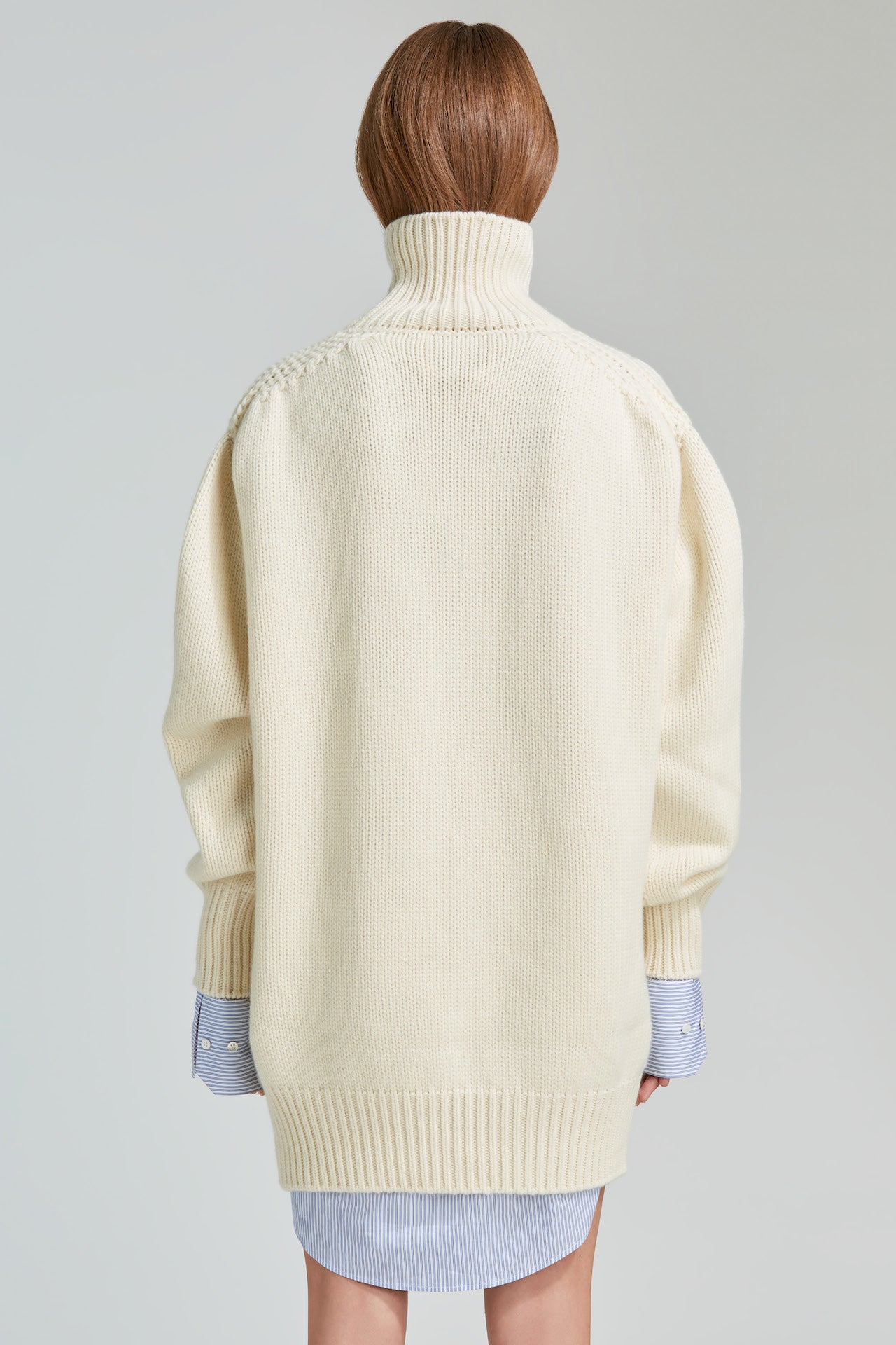 Scopri il nostro maglione oversize a maglia grossa con collo alto, realizzato con il cashmere cardato di Cariaggi, in 8 fili ritorti doppi: l'ultima incarnazione dello chic senza sforzo, un capo essenziale del guardaroba che emana sofisticata discrezione ed eleganza senza tempo.