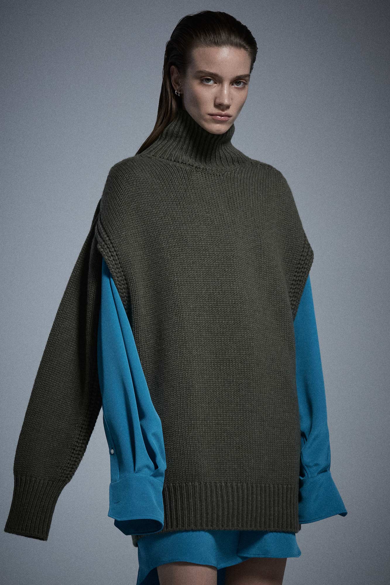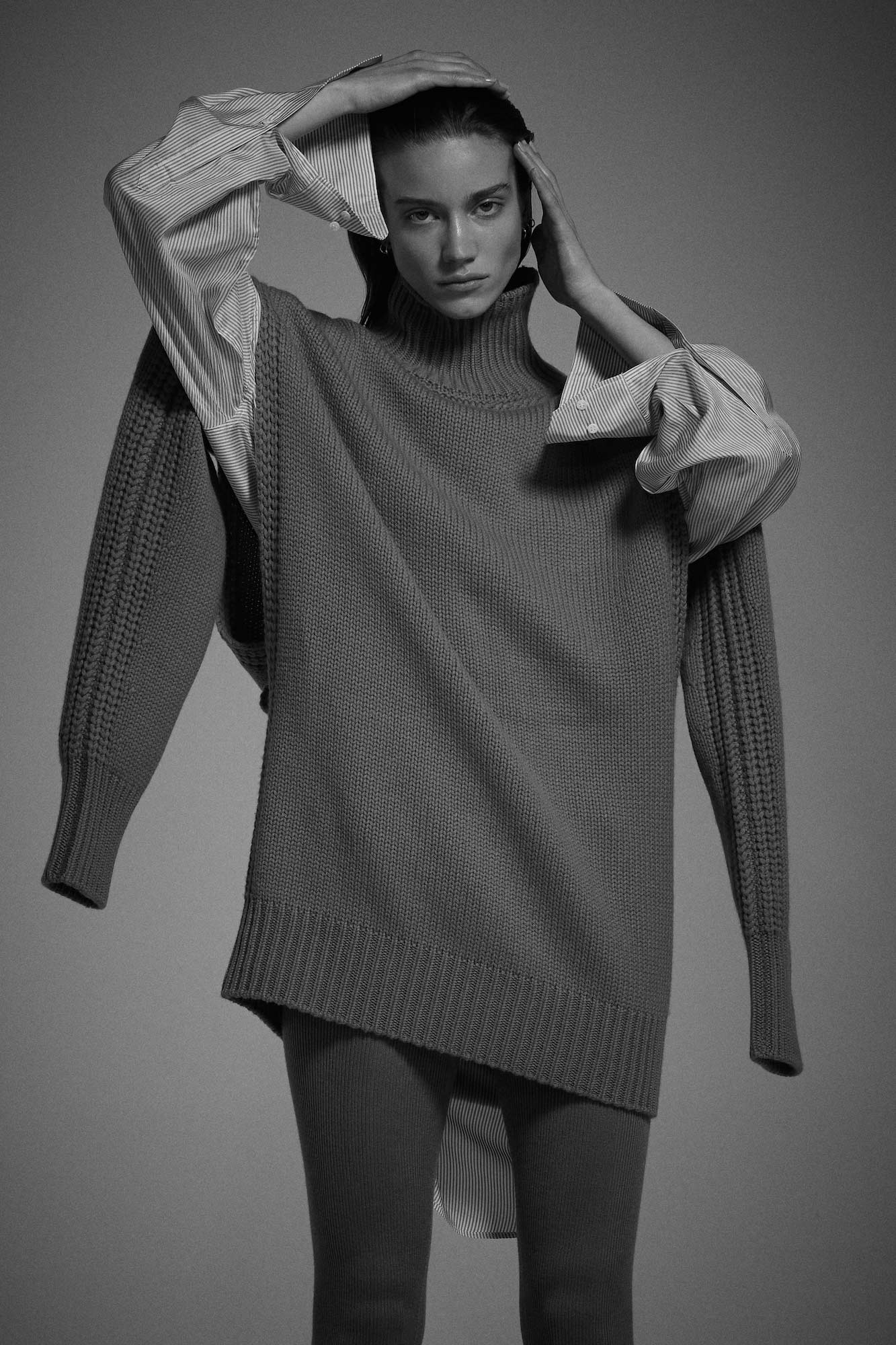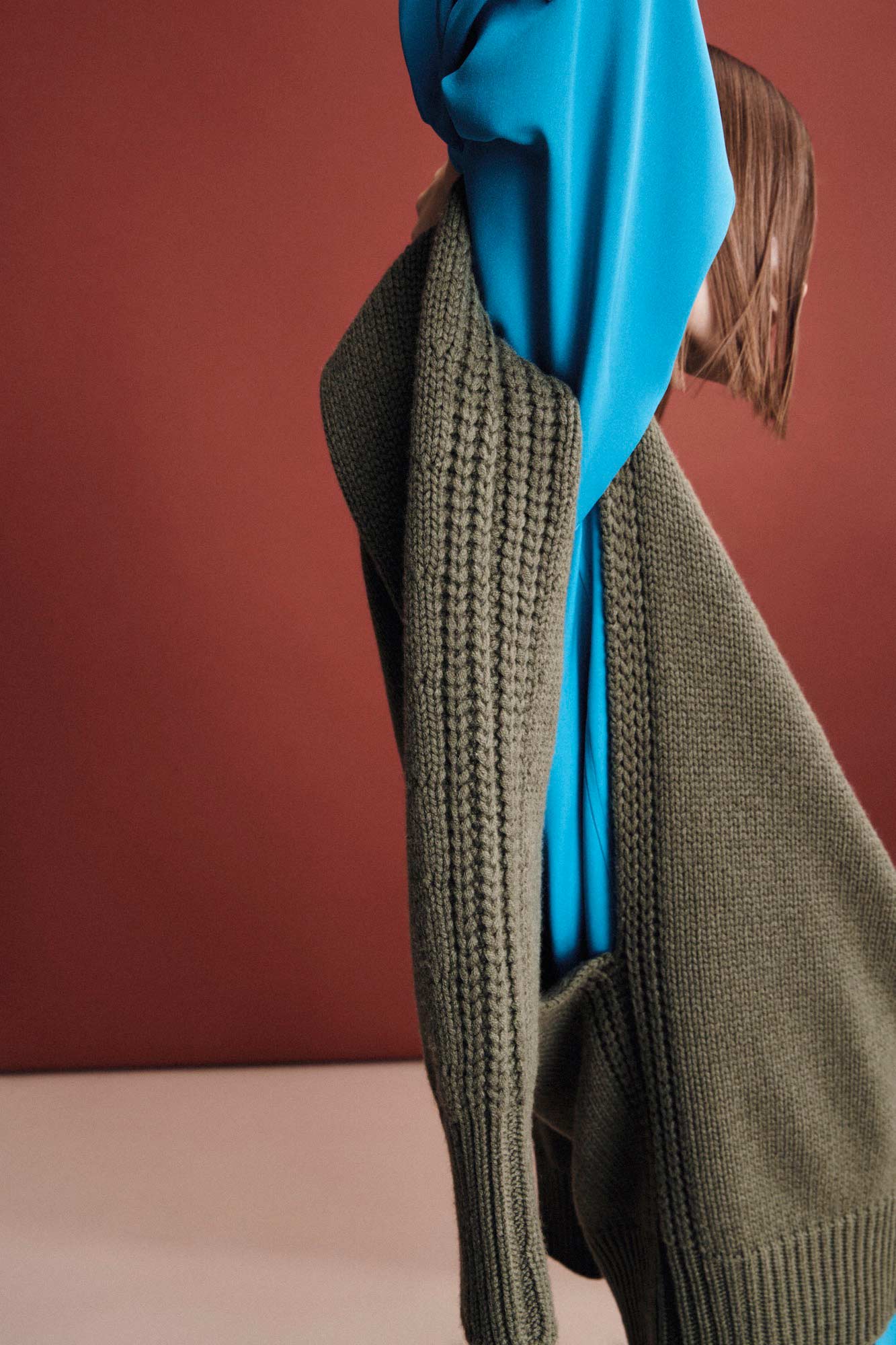 Usa come maglia oversize o maglione abito. Con le maniche o smanicato. Prova anche con una cintura da far passare all'interno delle aperture laterali se vuoi enfatizzare il punto vita tenendo libero il retro del maglione.