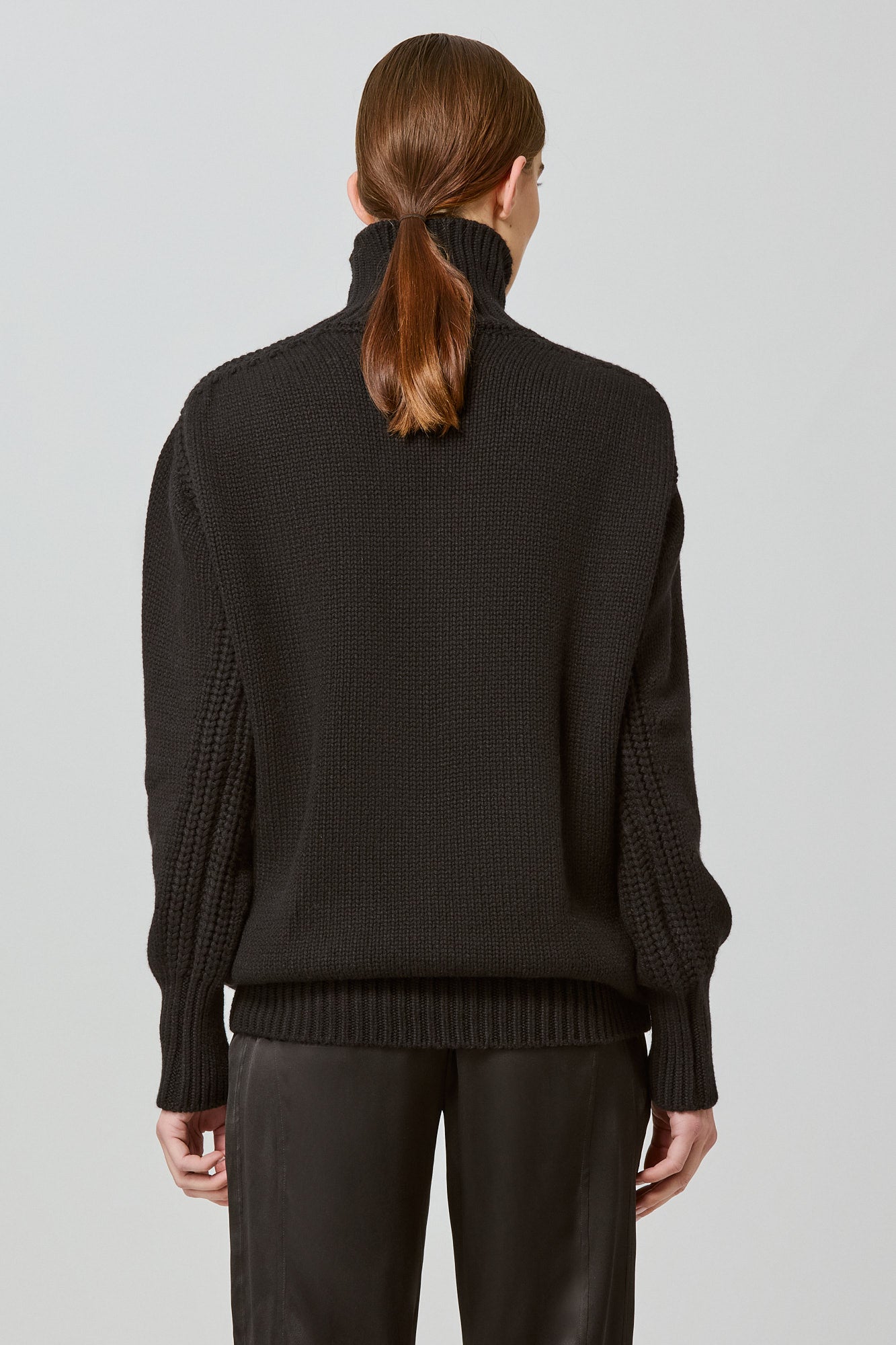 Scopri il nostro maglione oversize a maglia grossa con collo alto, realizzato con il cashmere cardato di Cariaggi, in 8 fili ritorti doppi: l'ultima incarnazione dello chic senza sforzo, un capo essenziale del guardaroba che emana sofisticata discrezione ed eleganza senza tempo.