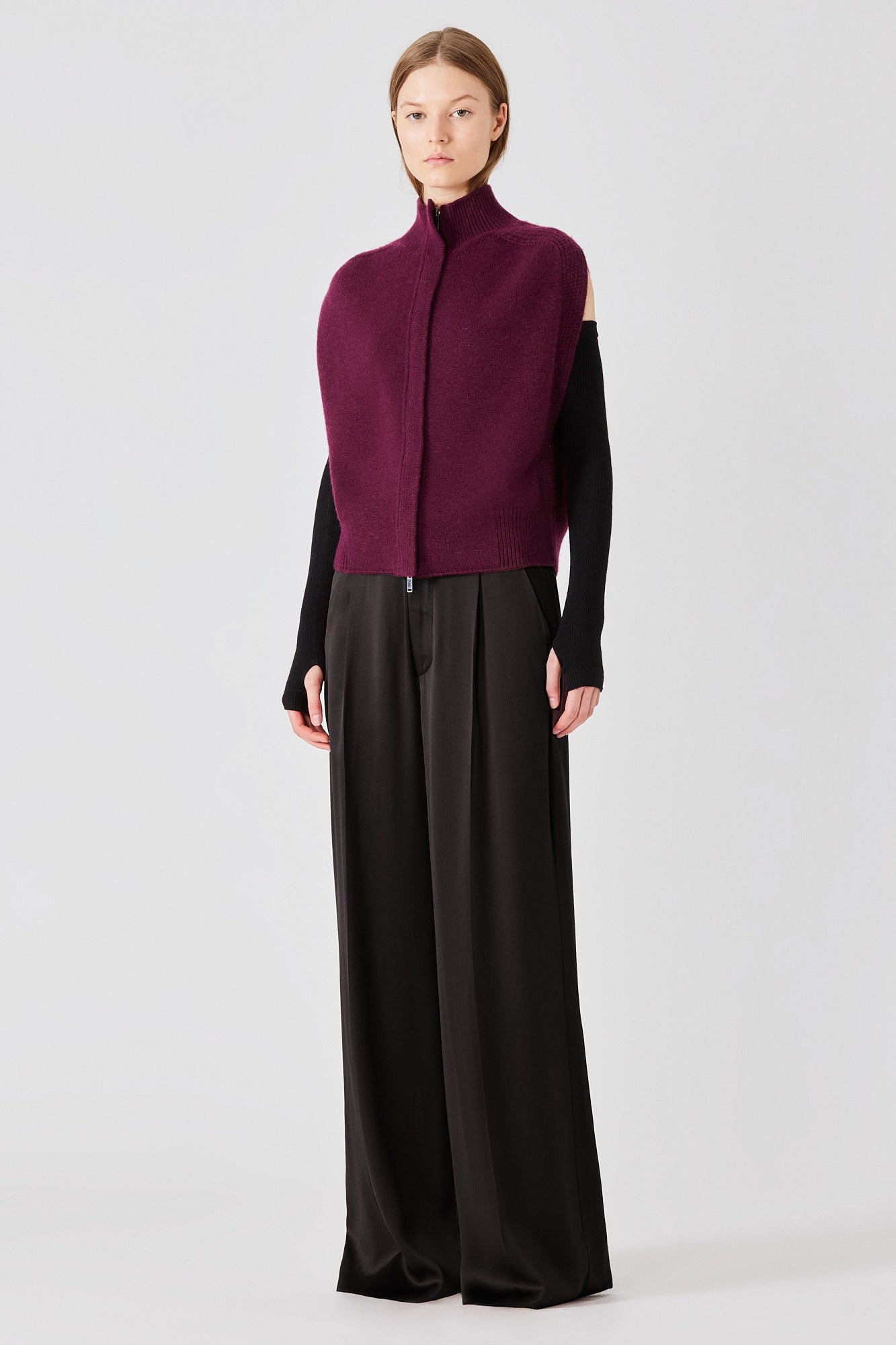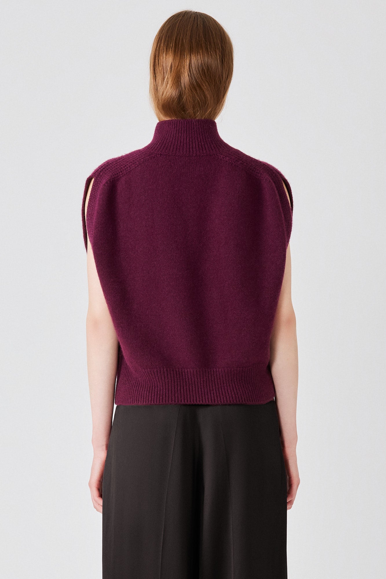 Una rivisitazione contemporanea del maglificio funzionale, il Cardigan senza maniche Matilda è realizzato in puro cashmere e progettato con una silhouette pulita e strutturata. Il colletto alto e la chiusura frontale con zip conferiscono un tocco sportivo, mentre il taglio senza maniche lo rende ideale per stratificazioni di transizione. I bordi a coste completano il look con una definizione sottile, permettendo di indossare questo capo aperto sopra una camicia o chiuso con la zip come pezzo unico distintivo. Abbinalo a pantaloni a gamba larga o a un tailoring morbido per un contrasto moderno e testurizzato.
