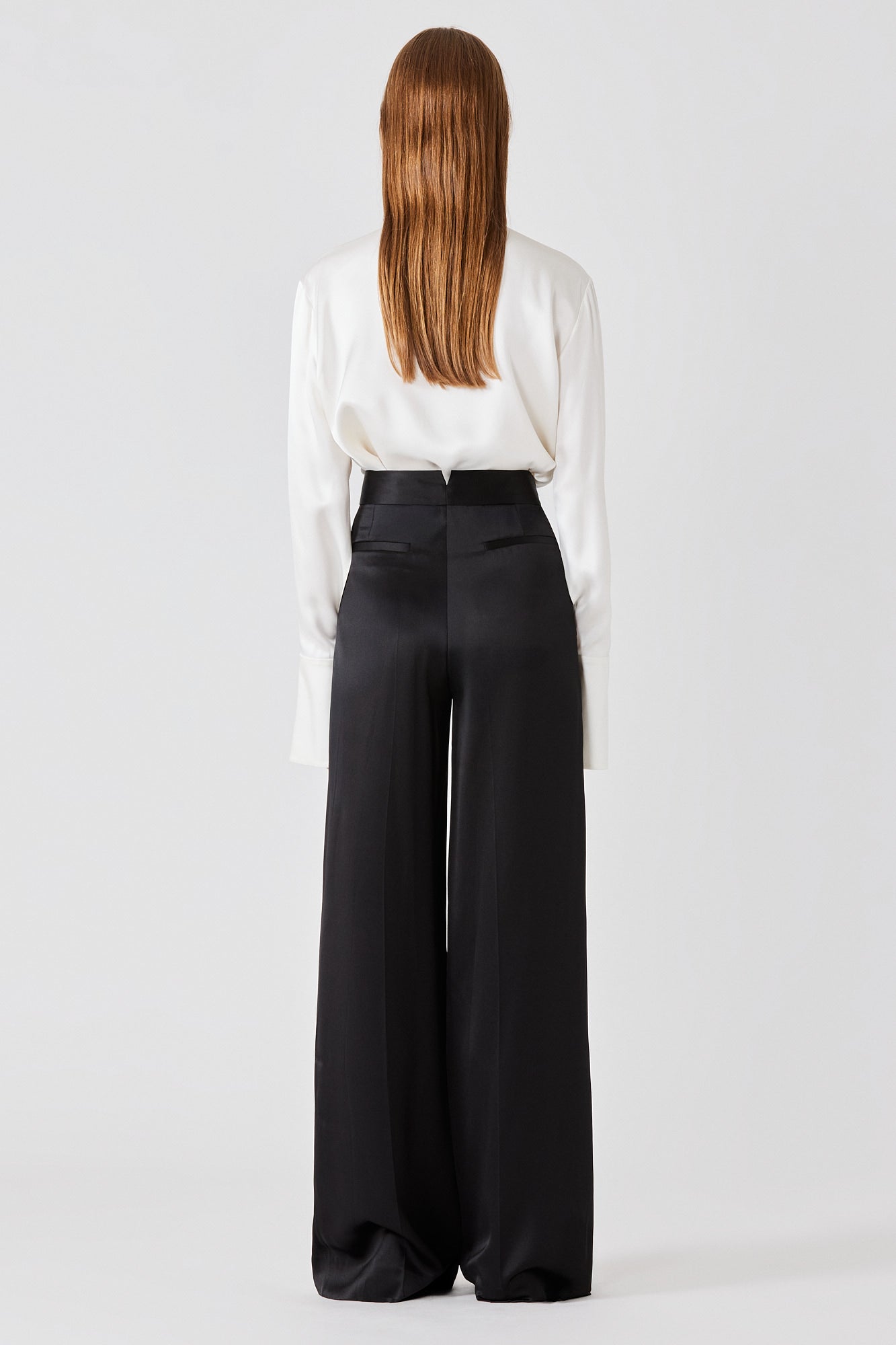 Realizzati in doppio raso fluido, i pantaloni Bogart presentano una vita alta e una silhouette a gamba larga. La caduta raffinata e le pieghe stirate conferiscono un'eleganza moderna e sofisticata, ideale per l'uso quotidiano, occasioni speciali o look serali d'impatto.
