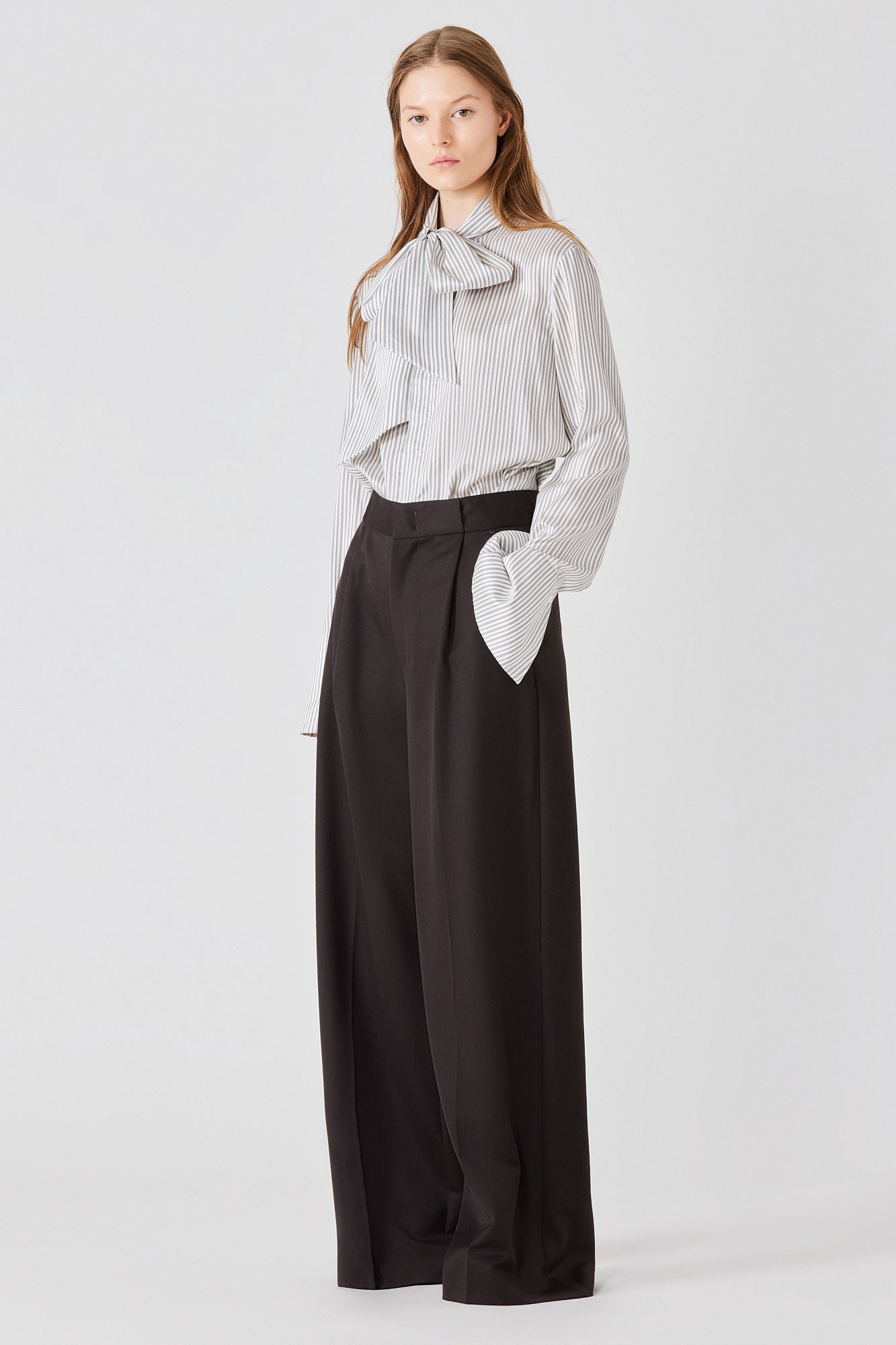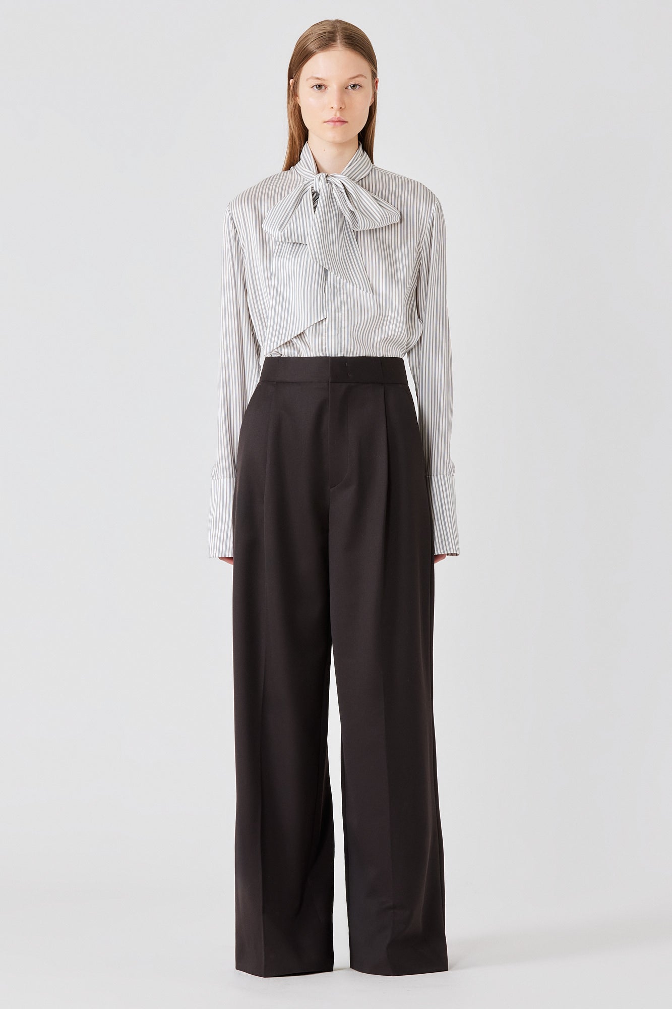 Realizzati in pura lana da smoking, i pantaloni Bogart presentano una vita alta e una silhouette a gamba larga. Pieghe ben stirate e una caduta pulita conferiscono un'eleganza strutturata, perfetta per un abbigliamento su misura da giorno o per look formali da sera.