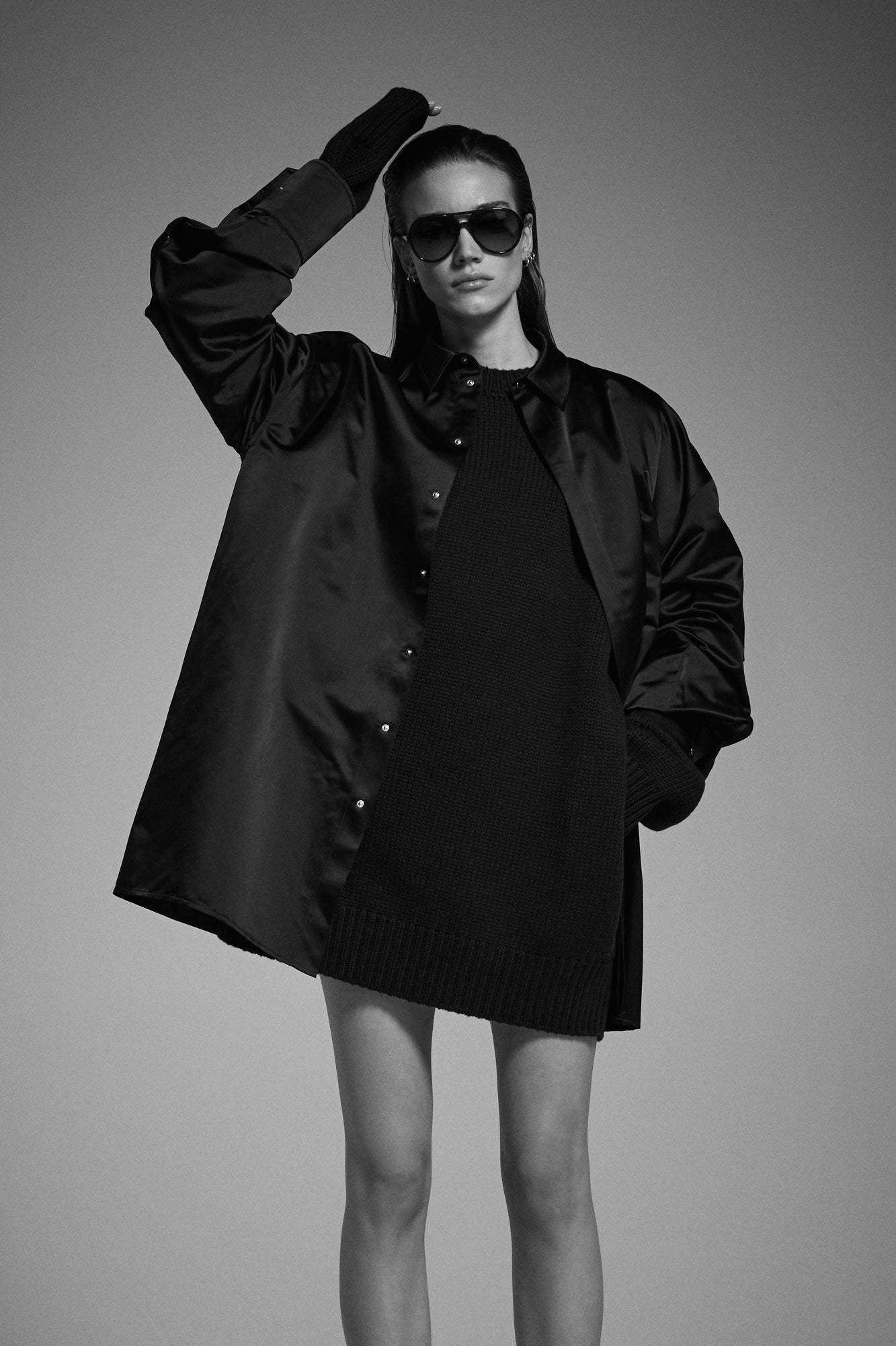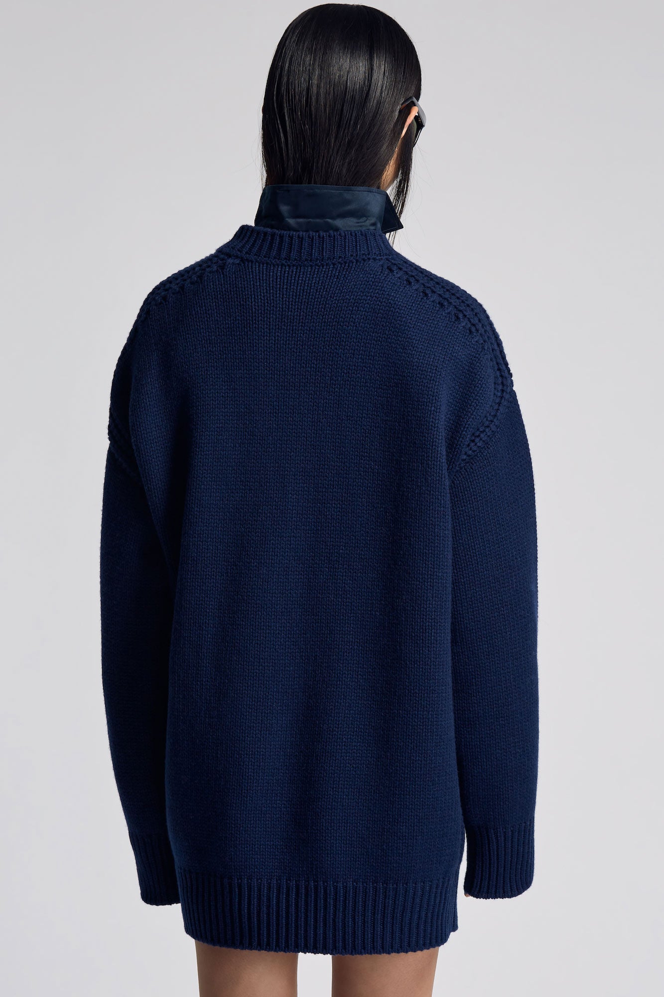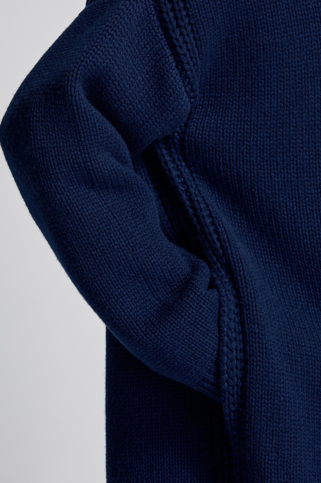 Functionality is enhanced by the side slits that allow to put your hands in the pockets. Perfectly versatile, it can be warn by itself as a dress or over trousers as an oversized sweater. Recognisable by SASUPHI's signature double english rib detailing on the shoulders and along the sides.