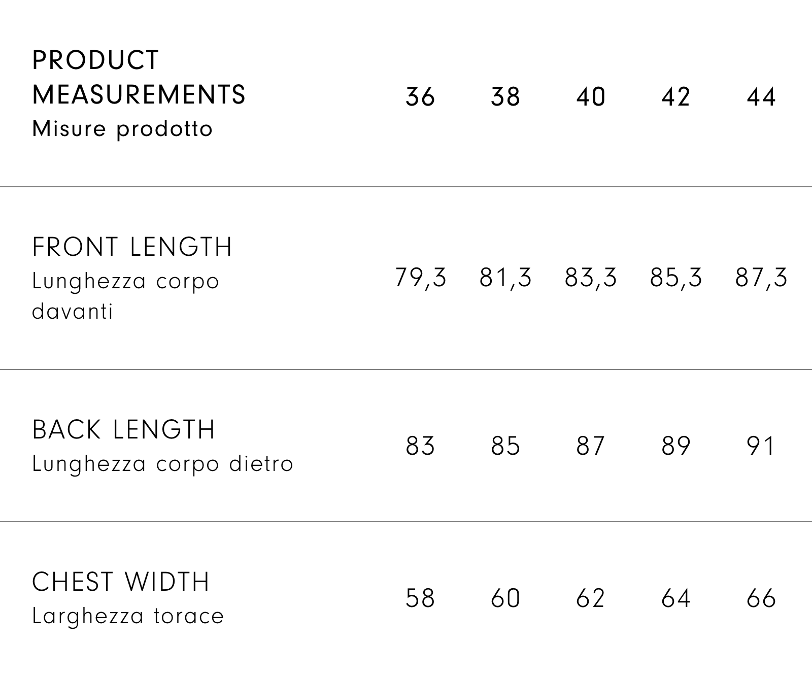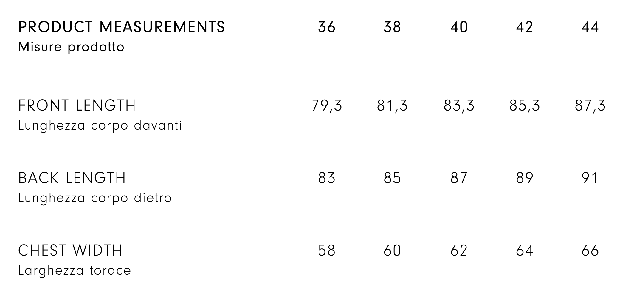 Size guide - Customised size*